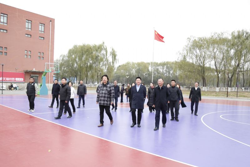 仪式结束后,学院领导一行实地参观了“荷风书苑”,对阅览区的功能布局、资源建设及智能化服务给予充分肯定。随后,他们沿荷花池步道深入了解景观改造的生态理念与人文内涵,并在升级后的运动场驻足体验。田彦与运动场上的学生亲切交流,与同学们开展投篮互动,现场气氛温馨热烈。这生动的一幕,正是学院美丽校园建设“以师生为本”的鲜活写照。
