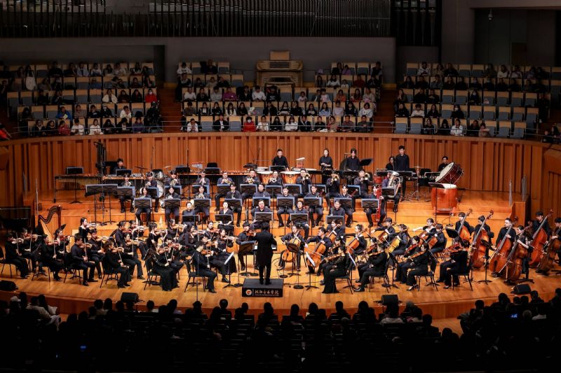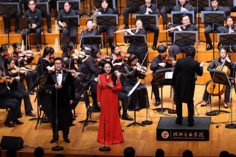 沈阳音乐学院作为中国共产党创办的第一所高等艺术学府,八十余载风雨兼程,始终与党和人民同呼吸、共命运。鲁艺精神已深植于沈音人的血脉,成为不灭的艺术基因与永恒的精神底色。在“春华秋实”的舞台上,鲁艺精神化作舞台上可闻可感的乐章。在音乐会演出的曲目创作者中,秦咏诚、张千一、姜万通、刘晖、王云飞等一代代校友作曲家以多元音乐语汇续写着鲁艺精神新时代的答卷。这是精神的传承,更是一条清晰可见的接力之路。从执笔创作的校友,到舞台中央的演奏家与教师,再到交响乐团中跃动的年轻面孔——同一血脉在不同的成长阶段接棒前行。他们在这场并肩合作的演出实践中,看见了未来的自己,更感受到精神力量的绵延。创作的初心、审美的追求、对家国的深情,鲁艺“文艺为人民”的初心始终如一,在“创作——演绎——传承”的链条中生生不息。舞台上,每一个音符的共振,不仅是技艺的交融,更是精神的汇聚——将历史的理想化为此刻的强音,让今天的交响孕育未来的希望。