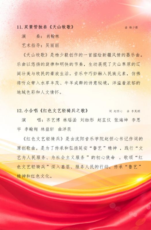 系列惠民演出活动是沈阳音乐学院赓续“艺术为人民服务”的鲁艺光荣传统,充分发挥学院资源优势,服务市民文化生活的务实举措。学院将通过建立惠民演出常态化机制,将优质艺术资源带入城市生活,为广大市民开放免费欣赏高雅艺术的窗口。此举旨在丰富大众精神世界,提升审美素养,是沈阳音乐学院主动融入并服务沈阳城市文化建设,挖掘鲁艺红色经典、传承地方优秀文化、弘扬特色地域文化的有力实践。
