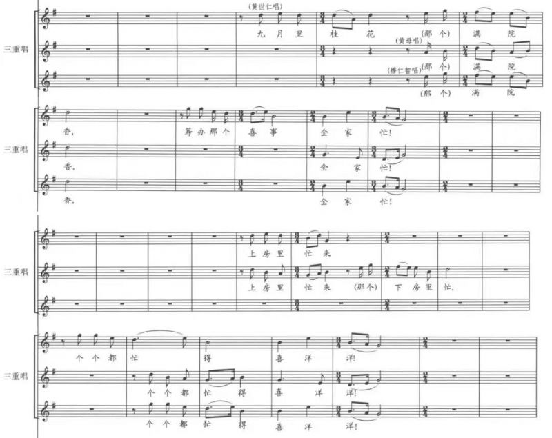 谱例2 第三幕第一场 第四十七曲《九月里桂花》(黄世仁、穆仁智、黄母三重唱)②