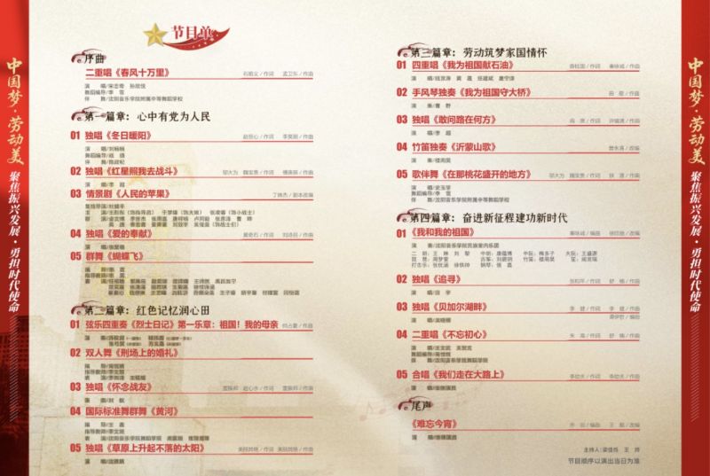 作为中国共产党创办的第一所高等专业艺术院校,沈阳音乐学院始终传承鲁艺红色基因,践行“植根民族,融入时代,突出特色,服务社会”办学理念。此次演出是学院发挥专业优势、服务地方发展、打造“舞台上的思政课堂”的生动实践。未来,学院将继续坚守艺术初心、勇担时代使命,以优秀文艺作品歌颂劳动之美、传递奋斗力量,为助力辽宁全面振兴贡献沈音力量。