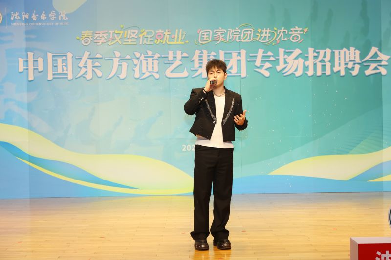 招聘会由庞渤主持。沈阳音乐学院校友、现就职于中国东方演艺集团的音乐总监洪兵与声乐中心副主任范晓霞分别结合自身经历,向毕业生们分享了宝贵的工作经验与成长体会。