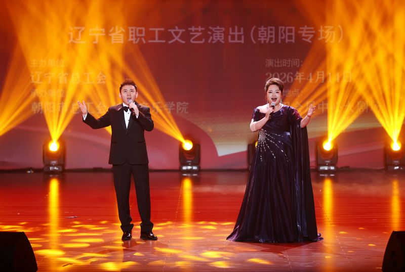 4月14日,由辽宁省总工会主办,朝阳市总工会与沈阳音乐学院共同承办的“中国梦•劳动美——弘扬劳模精神•礼赞奋斗风采”辽宁省职工文艺演出(朝阳专场),在朝阳会展中心大剧场精彩上演。本场演出是2026年省总工会送戏到基层系列活动之一,也是“中国梦•劳动美”系列主题教育活动职工文艺巡演的第二站。省总工会、朝阳市有关领导,沈阳音乐学院副院长张策,出席朝阳市劳动模范、先进工作者和先进集体表彰大会的全体获奖集体、劳动模范和职工代表800余人共同观看演出。