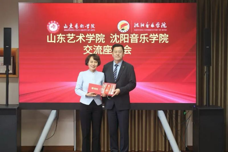 徐梅对沈阳音乐学院的热情接待表示衷心感谢。她高度评价学院悠久的办学历史、深厚的红色基因以及在高水平文艺精品创作、非遗传承体系构建、国际交流合作等领域取得的丰硕成果。她表示,沈阳与济南虽相隔山海,但文脉相通、情谊相连,此次来访深切感受到沈音严谨的治学氛围和雄厚的办学实力。她简要介绍了山东艺术学院的发展历程,以及近年来在博士点建设、国家社科基金重大项目突破、国家艺术基金立项等方面取得的显著成绩,期待以此次调研为契机,推动两院在国际交流合作平台共享、学科建设、人才联合培养、优秀传统文化跨地域协同研究、高水平精品联合创作等方面建立常态化交流合作机制,共同谱写艺术教育合作新篇章。