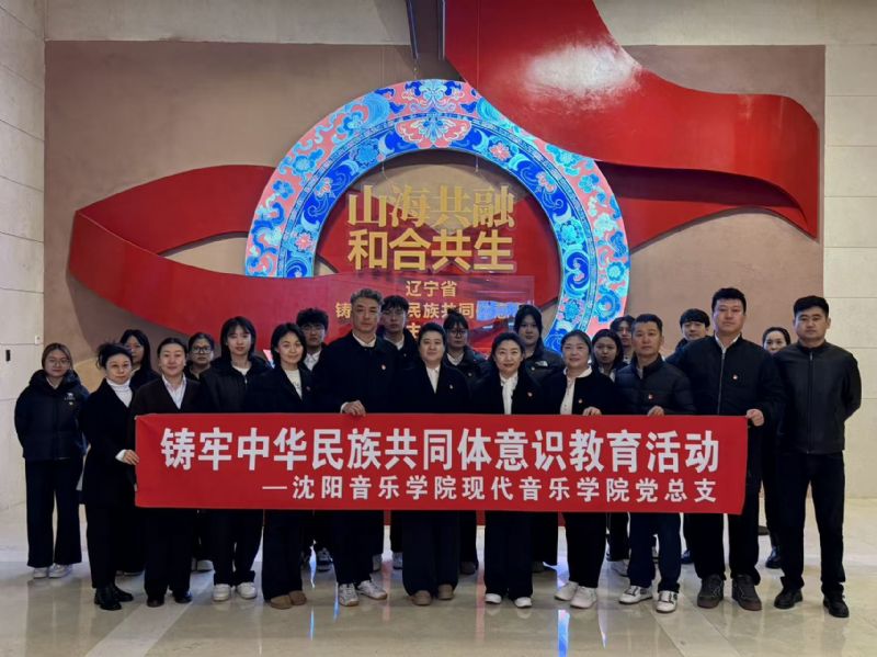 • 11月14日,现代音乐学院党总支组织师生开展铸牢中华民族共同体意识主题教育活动。20余名师生党员、少数民族师生、高层次人才和群众代表赴辽宁省博物馆参观“铸牢中华民族共同体意识主题展”,在参观活动中,师生们深入理解中华民族多元一体格局的形成历程,增强对中华民族共同体意识的认同感。