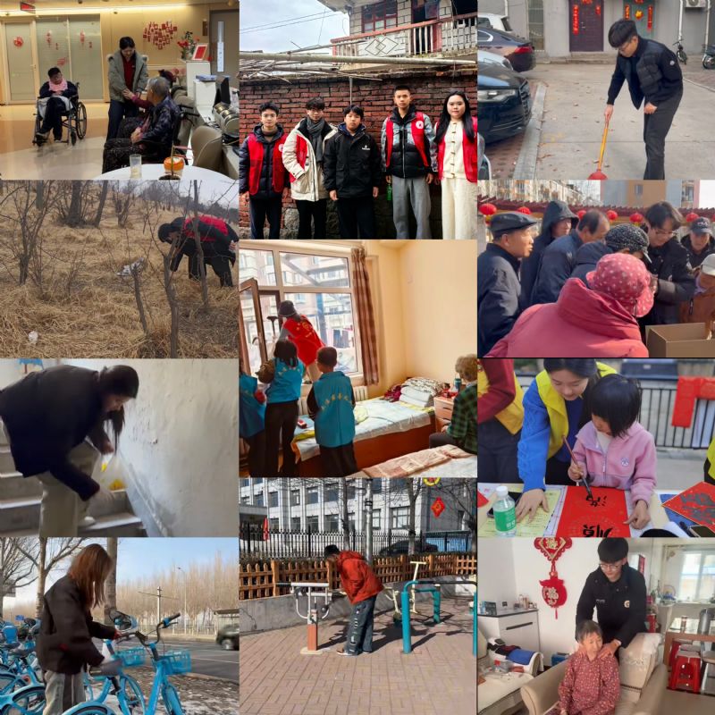 学子们在活动中坚持“知信行统一”原则,开展覆盖广泛、形式多样的志愿服务。他们的足迹遍及辽宁沈阳、山东聊城、广东中山等地,积极参与社区环境保护、便民服务引导、助老扶幼关爱等公益活动。大家以“螺丝钉精神”扎根平凡岗位,用真诚服务传递温暖力量,充分展现了新时代青年的责任与担当。