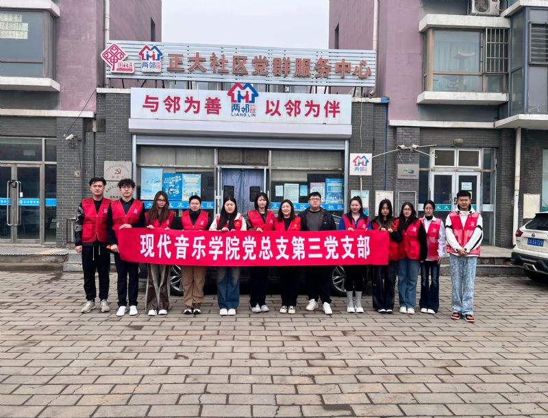 • 阳春三月,春意渐浓。为大力弘扬雷锋精神,深化校地共建与志愿服务融合发展,3月23日,沈阳音乐学院现代音乐学院党总支第三党支部组织师生走进浑南区正大社区,开展“学雷锋、践初心”主题志愿服务活动,以实际行动践行“为人民服务”宗旨,传递青春温暖。此次活动也是现代音乐学院党总支持续推进基层党组织建设、发挥党员先锋模范作用的具体实践,展现了第三党支部在推动校地联动、服务地方发展中的积极作为。