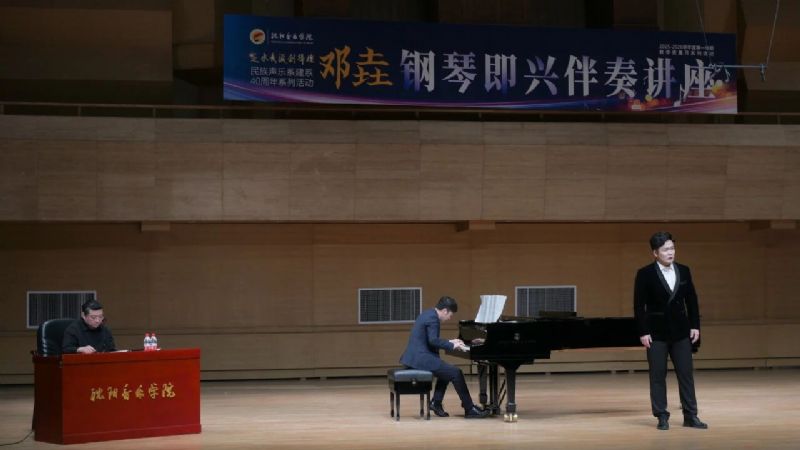 • 作为“延水长流创辉煌——民族声乐系建系40周年系列活动”以及2025—2026学年度第一学期教学质量月系列活动的重中之重内容,聚力艺术实践和教学的深层次融合,助推人才培养质量的提升,11月12日,沈阳音乐学院教师教学发展中心与民族声乐系联合特邀中国音乐学院声乐歌剧系钢琴艺术指导、硕士研究生导师、一级演奏员、作曲家、钢琴家邓垚老师,于沈阳音乐学院音乐厅作题为《钢琴即兴伴奏》的专业讲座。讲座由民族声乐系主任匡祎主持。
