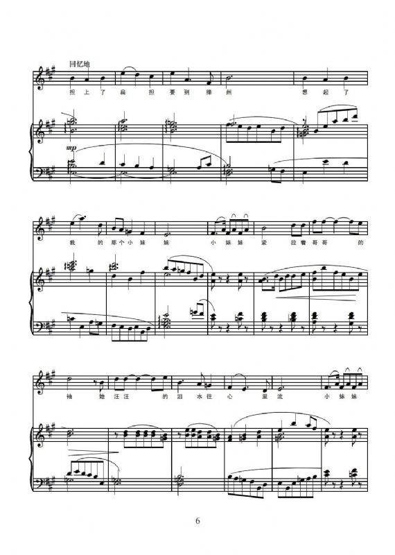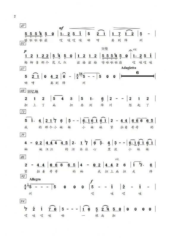 钢琴声部以灵动的编配手法,生动模仿了唢呐的高亢、板胡的柔情与三弦的诙谐,既保留了民间吹打乐的质朴与热情,又为作品注入了鲜明的时代色彩。传统旋律与现代钢琴编配相映成趣,将脚夫步履匆匆的劳作身影与想念“妹妹”的柔软心绪交织在一起,在传承中续写着走绛州的当代故事。