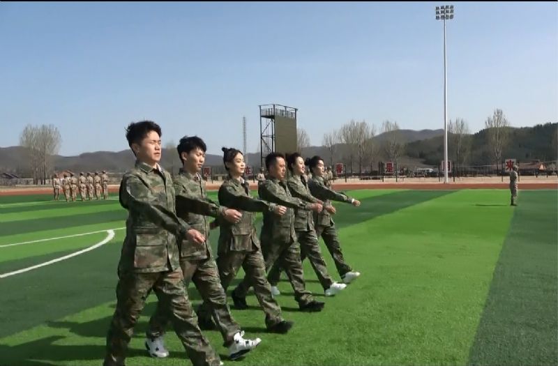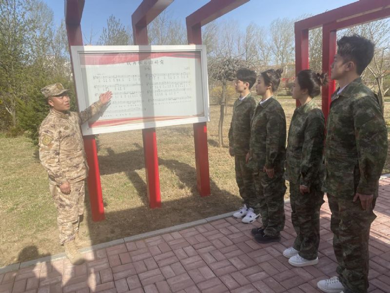 在新兵训练场上,小分队队员身着军装,零距离体验军事训练。站军姿、报数、齐步走、敬礼……步伐整齐、声音清脆,口号嘹亮、回荡在训练场上。训练结束后,部队代表以军旅题材歌曲《我为祖国站好岗》为切入点,围绕党的二十大精神,为队员们讲授国防教育课,引导学生深入了解当前的国防形势,激发学生爱党爱国的深厚情感和居安思危的忧患意识,努力成为守护祖国国防安全的新时代大学生。