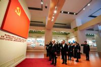 4月26日上午,戏剧影视学院一行来到国家博物馆,参观“复兴之路”展览的基本陈列部分和新时代部分。“复兴之路”基本陈列部分通过1280多件(套)珍贵文物和870多张历史照片,展示了从1840年鸦片战争到2011年初170年间中华民族的复兴之路;“新时代部分”展现了十八大以来,我国在社会经济、科技文化、生态环境、人民生活等方面发生的翻天覆地变化。沿着参观路线,党员们时而驻足凝视、时而感慨交流,深入了解了中国共产党领导各族人民争取民族独立人民解放、国家富强人民幸福的光辉历程,深刻体会了中国共产党为人民谋幸福、为民族谋复兴的初心和使命,感受了中国共产党领导下的中国人民的伟大力量,接受了一次深刻的党性洗礼。在展馆内,大家面向党旗,重温入党誓词。