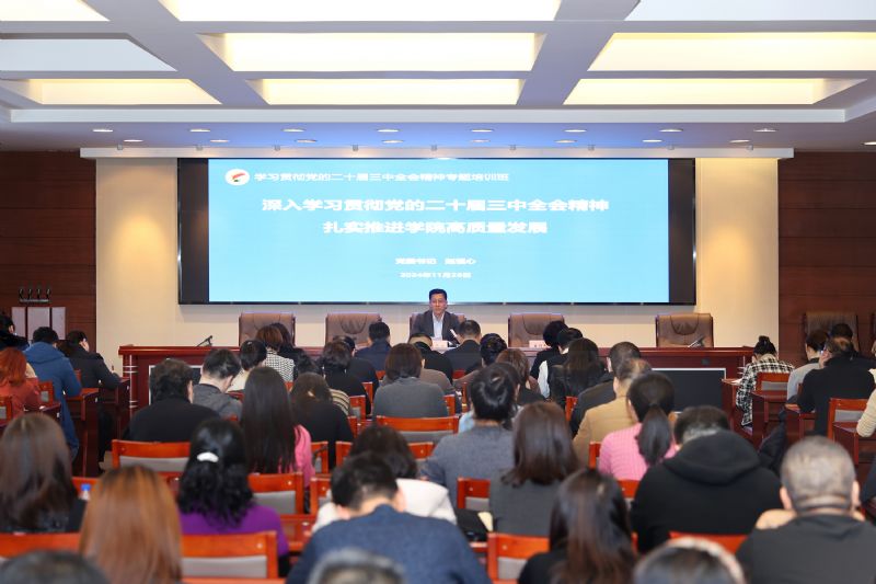 报告中,赵恒心围绕深刻认识党的二十届三中全会的重大意义,准确把握进一步全面深化改革的指导思想、总体目标和重大原则,准确把握《决定》提出的进一步全面深化改革的重大举措,以及抓好全会精神贯彻落实四个方面,进行了详细阐释和生动解读。赵恒心从历史意义、理论意义、现实意义和世界意义四个维度阐释了党的二十届三中全会的重大意义;从以坚持党的全面领导为根本保证、以坚持以人民为中心为价值导向、以坚持守正创新为基本原则、以坚持以制度建设为主线为重要要求、以坚持全面依法治国为有效途径、以坚持系统观念为科学方法六个方面,阐释了如何准确把握进一步全面深化改革的指导思想、总体目标和重大原则;从教育科技人才体制机制一体化改革、文化体制机制改革和党的建设制度改革三个方面,解读了《决定》提出的进一步全面深化改革重大举措,并聚焦学院高质量发展主题,就抓好全会精神的贯彻落实,提出了八个方面的工作要求。