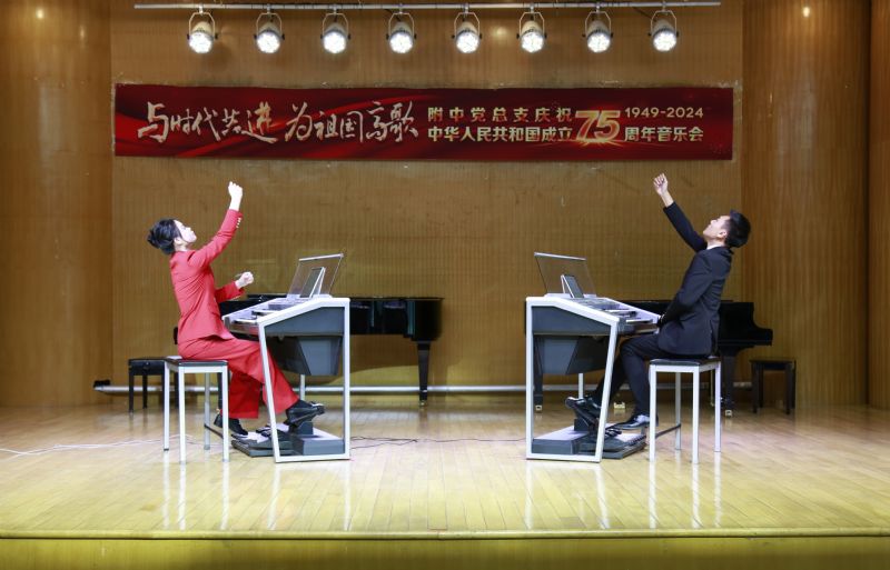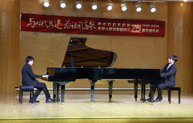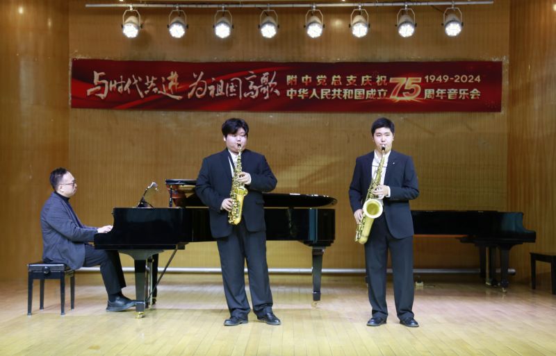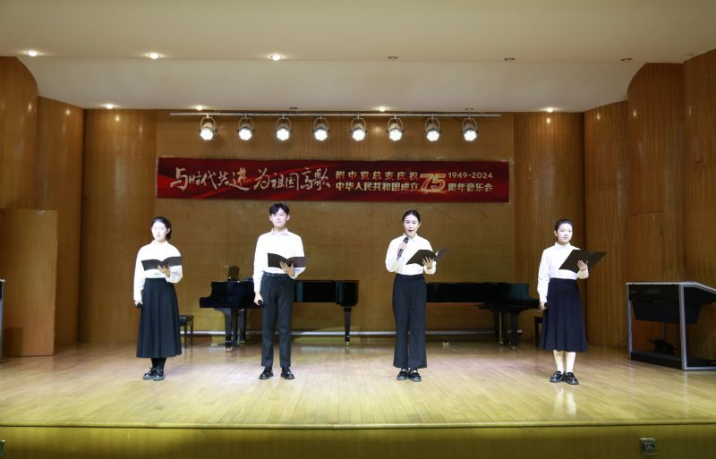 盛世华诞,荣耀中华。在中华人民共和国成立75周年之际,附属中等音乐学校党总支精心策划并举办“与时代共进 为祖国高歌”专场音乐会。党总支书记胡术艺、校长曹野、党总支副书记谢晓宇及各学科、科室负责人、教师、学生代表观看音乐会。音乐会由键盘学科党员教师刘明名主持。