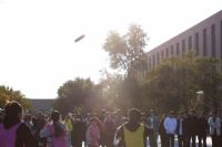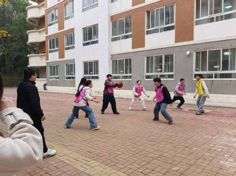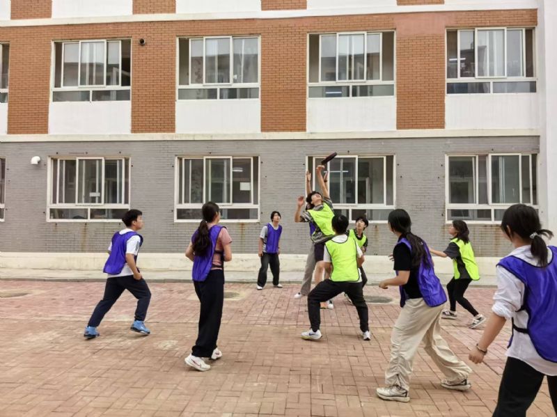 赛场上,同学们的协作精神展现得淋漓尽致——初中部瞄准飞盘九宫格时的专注认真、命中时的欢呼雀跃;高中部奔跑时的追风身影、传接时的精准默契、防守时的坚定姿态,每一个瞬间都充满青春力量。即便面临比分落后或体力透支,队员们依旧咬牙坚持:摔倒后立刻起身的倔强、队友间互相鼓劲的呐喊、暂停时共同复盘的专注,构成了赛场最动人的风景。其中,高二四班与高一二班的总决赛尤为精彩,双方凭借精湛的盘技与无缝的配合展开巅峰对决,现场欢呼声、加油声此起彼伏,将气氛推向高潮。