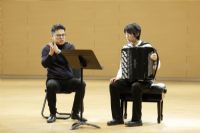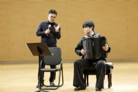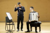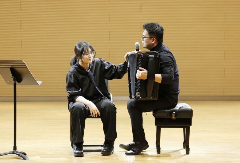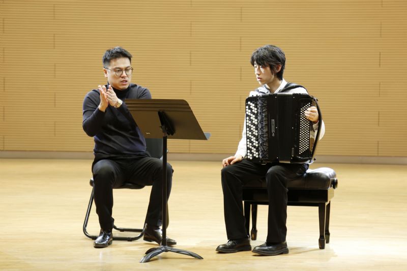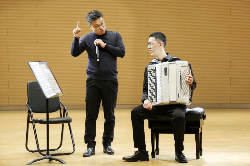 刘睿博士毕业于俄罗斯国立格涅辛音乐学院,拥有13年留俄深造经历。大师课上,4名学生分别演奏了斯卡拉蒂《G大调奏鸣曲》、弗拉索夫《春天》、谢苗诺夫《随想曲一号》、柴可夫斯基《六月船歌》《四月松雪草》、韦伯《音乐会协奏曲终曲》等巴扬手风琴原创与改编作品。刘睿围绕巴扬演奏的触键技巧、风箱控制、乐句呼吸及作品情感表达等核心要点,展开精准细致的示范性讲解与针对性指导,他通过生动示范、通俗解析,让在场师生深刻领悟到手风琴演奏不仅是技艺的展现,更在于真挚地抒发与传递演奏者内心的音乐情愫,唯有站在听众视角,以细腻的声音控制与精巧的音乐处理,方能实现与观众的深度沟通和情感共鸣。