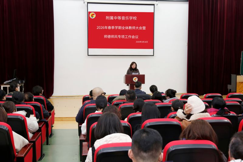 3月18日,附属中等音乐学校召开2026年春季学期全体教师大会暨师德师风专项工作会议。学校领导班子成员、全体教师参加会议。