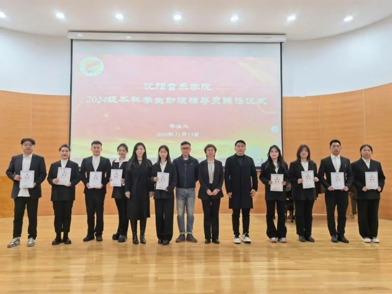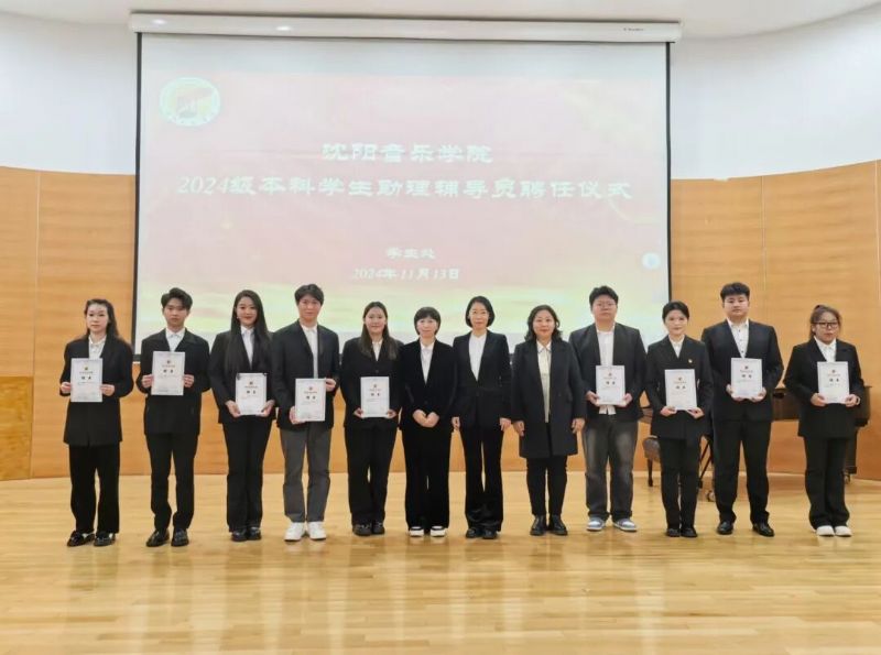 11月13日,沈阳音乐学院2024级本科学生助理辅导员聘任仪式在室内乐演奏厅成功举行。学生处处长王爽、副处长王春生,各二级院(系)党委、党总支(直属党支部)副书记、学生管理科科长,学生处思政教育科科长罗浩、学生管理科科长杨智涵,2024级新生辅导员及30余名助理辅导员代表参加仪式。仪式由王春生主持。