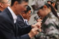 王硕宣读了军训获奖个人和获奖集体名单。学院领导为军训先进集体、军训内务优秀个人代表及军训先进个人代表颁发证书。