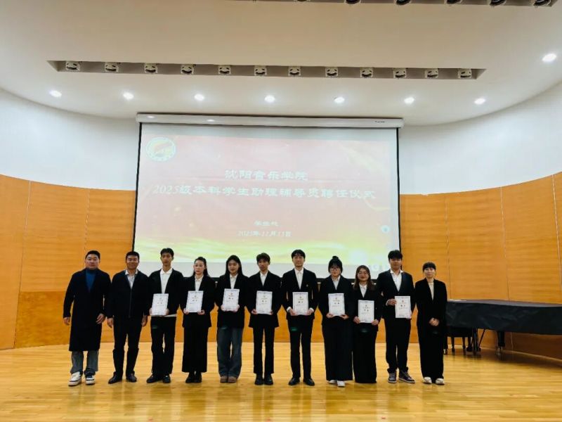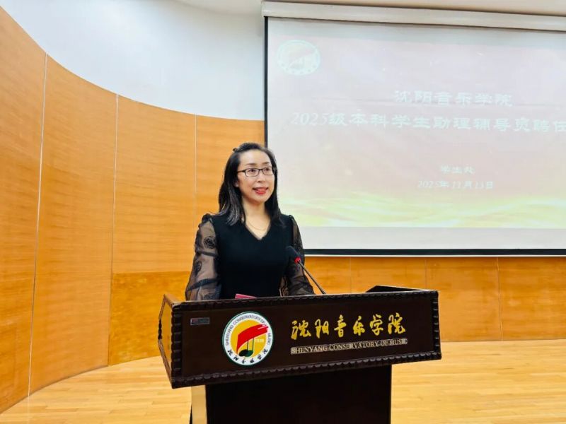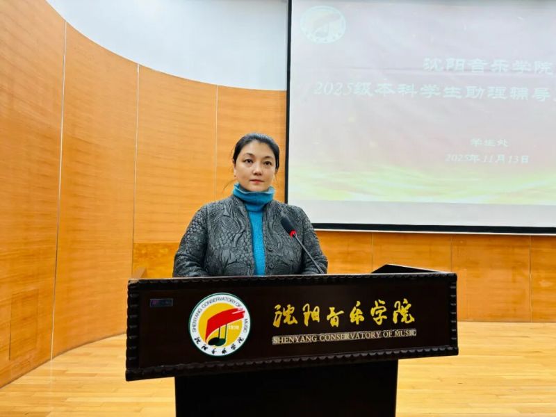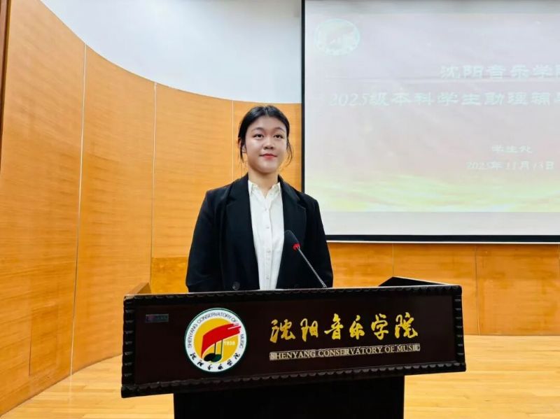 11月13日,沈阳音乐学院2025级本科学生助理辅导员聘任仪式在三好校区室内乐演奏厅举行。学生处处长王爽,各二级院(系)党委、党总支(直属党支部)书记、副书记、学生管理科科长,2025级新生辅导员、17名助理辅导员代表及30余名学生代表参加仪式。仪式由学生管理科科长杨智涵主持。