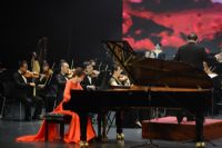 指挥家朱星,声乐系主任何月、管弦系主任曹阳,声乐系副主任史玉学、钢琴系副主任付宁,青年教师王文武、曹粹、李宜洺、赵毅帆联袂登台表演。他们用精湛高超的专业演出、昂扬饱满的精神状态展现出沈音人的风采,征服了现场观众。晚会上演的作品既有中外经典唱段,又有沈音人的经典力作;既有古风古韵的舞蹈表演,又有浓郁风情的器乐演奏。节目编排别具一格,舞台效果美轮美奂,给观众带来强烈的视觉冲击和听觉享受。