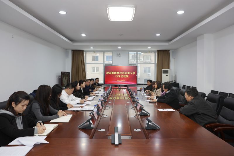 11月6日,副院长冯志莲(主持行政工作)会见来访的泰国曼谷吞武里大学教育学院院长卡孟曼·柴西丽塔尼亚(Kamolmal Chaisirithanya)、传媒艺术学院院长苏雅·布拉达查柴(Sukanya Buranadechachai)、美术与应用艺术学院院长马泰欣·阿多克(Mathasit Addok)、教育学院翻译教师林寒霜(Warunee Wongkumpho)一行。辽宁大学书画研究院院长张鹏,我院学校办公室、国际交流合作处、科研处负责同志参加座谈。座谈会由国际交流合作处处长梁风雁主持。