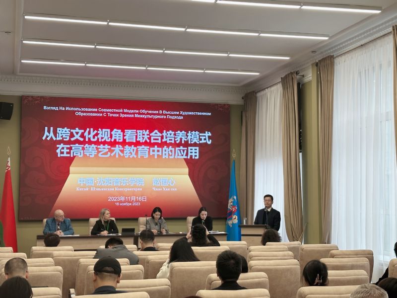 当天下午,赵恒心出席中国-白俄罗斯大学校长论坛,并作为中方唯一艺术院校代表作了题为《从跨文化视角看联合培养模式在高等艺术教育中的应用》的专题报告。