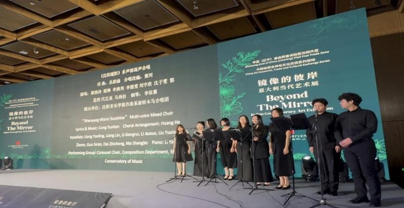 本次活动由辽宁省人民政府外事办公室、中国国际贸易促进委员会辽宁省分会指导,辽宁省公共文化服务中心、辽宁省文学艺术界联合会、中国(辽宁)自由贸易试验区沈阳片区管理委员会、北京嘉德艺术中心联合主办,教育部中外人文交流中心、文化和旅游部中外文化和旅游交流中心、沈阳市文学艺术界联合会协办,并获意大利共和国驻华大使馆等单位支持。我院作为辽宁省高校代表受邀参加活动,国内外专家、艺术界人士及企业代表等300余名中外嘉宾出席活动。