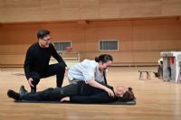 排练现场,曾任2015版民族歌剧《白毛女》导演的朱亚林导演为演员们细致讲解每一句台词的内涵、每一个动作的情感表达,帮助演员深入理解角色;在音乐呈现上,2015版《白毛女》指挥刘凤德先生带领沈阳音乐学院北方交响乐团为演员进行全剧唱段的合乐排练,确保演奏与演唱的完美融合;沈阳京剧院原院长李旗红老师为演员们进行身段及步法指导,让他们的舞台呈现更具民族韵味与特色。