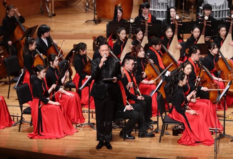 音乐会由当代青年指挥家、学院民族器乐系副教授孙鹏执棒,联袂沈阳音乐学院北方民族乐团及学院师生共同呈现。演出曲目编排匠心独运,以“西游”“三国”“红楼”“水浒”四大篇章为脉络,既各具韵味,又共同串联起古典文学的精神内核。