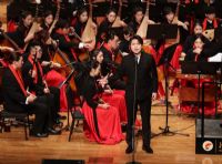《小刀会序曲》拉开了音乐会的序幕,激昂铿锵的乐声瞬间点燃全场;随后女声独唱《女儿情》以婉转深情的音韵,道出取经路上的缱绻情愫;《芦苇荡》与《一生所爱》旋律交织,箫声低回、弦乐如诉,道出爱别离、求不得的千般惆怅;男声独唱《敢问路在何方》则唱出漫漫征途上的豁达与坚定,豪迈洒脱,意气昂扬。随着《云宫迅音》的经典前奏响起,乐团演奏的每一个音符都仿佛踩着记忆的鼓点,用最熟悉的旋律和热烈恢宏的演奏唤醒集体记忆。