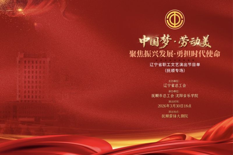 3月30日晚,由辽宁省总工会主办,抚顺市总工会、沈阳音乐学院共同承办的“中国梦•劳动美——聚焦振兴发展•勇担时代使命”辽宁省职工文艺演出(抚顺专场),在抚顺雷锋大剧院精彩上演。此次演出是“中国梦·劳动美”系列主题教育活动的重要组成部分,也是沈阳音乐学院作为高等专业艺术院校践行使命、服务地方的生动实践,旨在大力弘扬劳模精神、劳动精神、工匠精神,凝聚辽宁全面振兴的磅礴力量。省人大常委会党组副书记、副主任,省总工会党组书记、主席陈绿平,沈阳音乐学院党委书记赵恒心,党委副书记、院长田彦,副院长张策、张庆玫,抚顺市相关领导与千余名抚顺职工群众共同观看了演出。