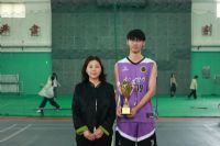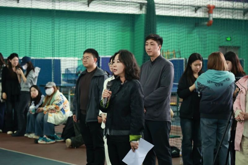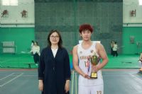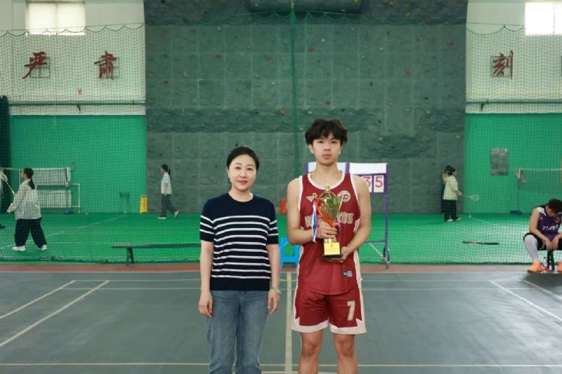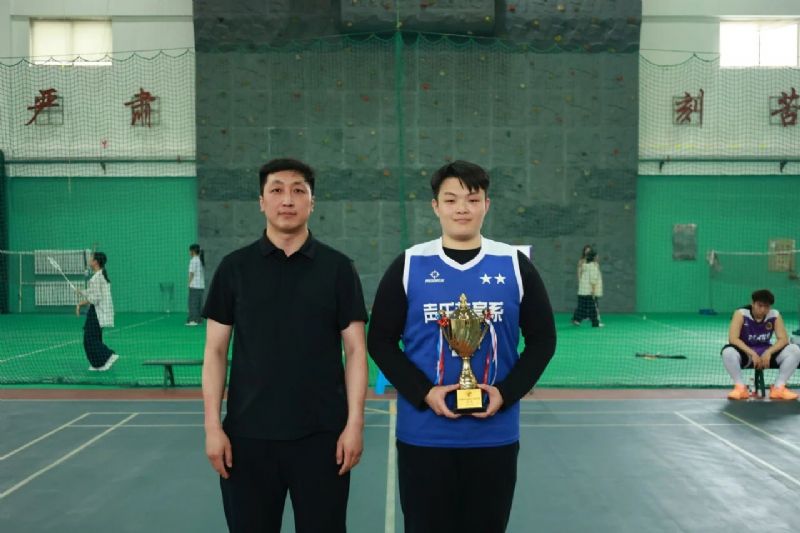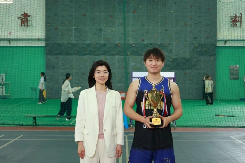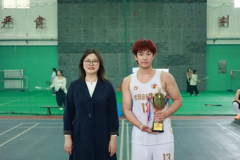 音乐教育学院学生管理科科长赵晓晨为获奖球队颁奖