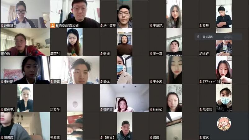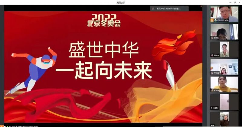 辅导员王晓飞、王艺霏为2019级、2020级、2021级全体学生开展《盛世中华,一起向未来》主题班会课,党总支副书记温雅参会。班会课由冬奥会开幕式、夺金时刻、女足亚洲杯三段短视频开场,激动人心的短视频让同学们通过视觉冲击完成了心理破冰,同学们通过积极发言、会议留言框留言、微信群内互动等方式分享心得体会。班会课过程中,辅导员也与同学们互动交流,祝福同学们迎接新学涯新开始。