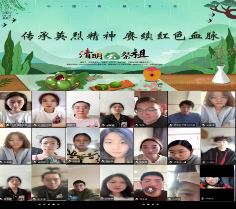 为深入弘扬英烈事迹和精神,引导广大学生传承革命先烈的优秀品质,引领崇尚、缅怀、学习、捍卫英烈的风尚,按照学院工作要求,4月5日,民族器乐系在全体学生中开展以“传承英烈精神 赓续红色血脉”为主题的“云端祭英烈”班会暨主题团日活动。
