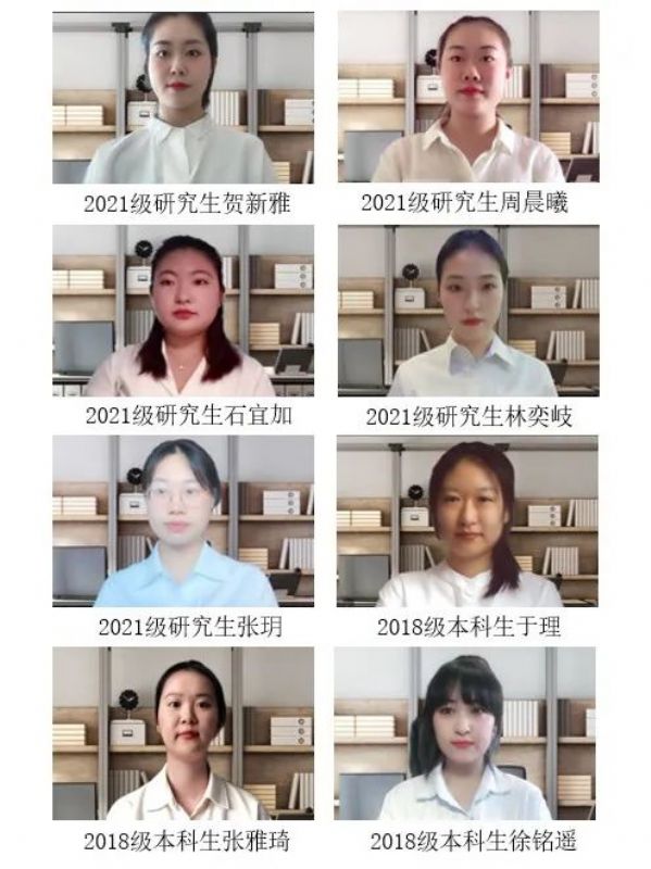 在经验分享环节,2021级研究生贺新雅、周晨曦、石宜加、林奕岐、张玥同学,2018级本科生于理、张雅琦、徐铭遥同学分别进行了考研经验分享。