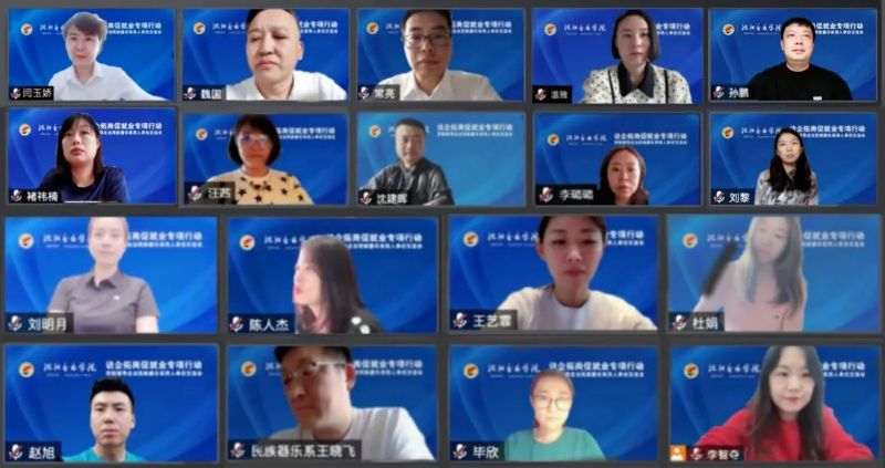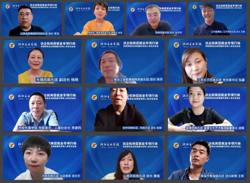 为认真贯彻落实教育部、省委、省委教育工委关于高校毕业生就业工作的相关决策部署和学院《开展访企拓岗促就业专项行动实施方案》工作安排,积极搭建校企合作平台,不断深化教育教学改革,拓宽毕业生就业渠道,6月14日,纪委书记、监察专员闫玉娇及民族器乐系全体领导班子成员“云走访”13家用人单位,通过视频连线的形式,与山西省歌舞剧院民族乐团、陕西省广播电视民族乐团、珠海民族乐团、辽宁歌舞团辽宁民族乐团、无锡民族乐团、黑龙江省歌舞剧院民族乐团、江苏女子民族乐团、西安外事学院、吉林交响乐团民族乐团、富康民族乐团、河南民族乐团、南京民族乐团、慈溪市青瓷瓯乐团(按照参会人员姓氏笔画排序)13家用人单位进行座谈交流。创新创业中心、就业指导中心副主任褚祎楠,民族器乐系教师代表参加会议。会议由系党总支书记常亮主持。