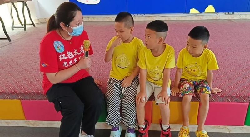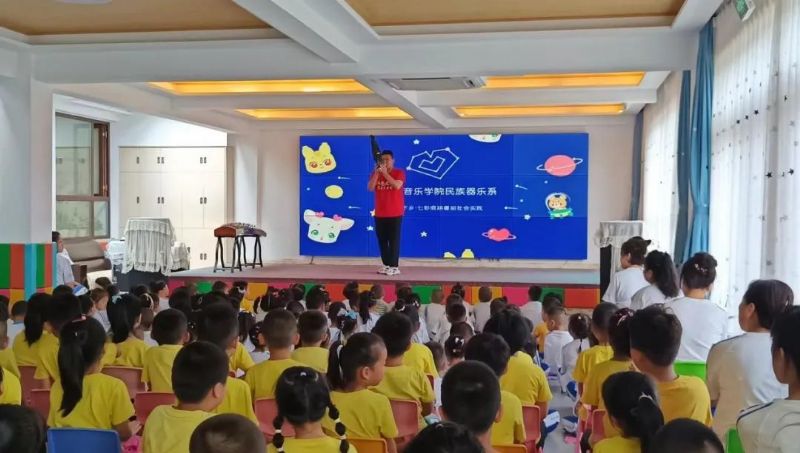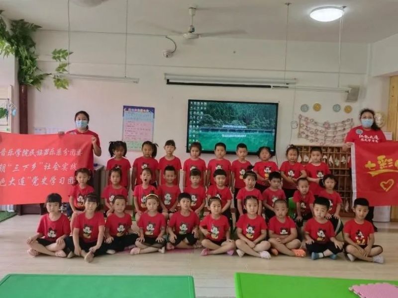 民族器乐系大学生“红色大连”党史学习教育团,也是“七彩假期”国家志愿服务示范团队,所有成员统一课程设计、共同备课、充分利用中国青年志愿者协会派发物料包的前提下,在各自所在地开展相应志愿服务活动。8月15日,团队成员走进大连市炮台镇博乐启迪幼儿园,为280余名孩子奉献了一场丰富精彩的红色课堂,充分发挥国家示范团队的先进性,展示省级重点团队的专项特点,用实际行动服务乡村振兴,用“奉献、友爱、互助、进步”精神谱写志愿者的青春之歌。