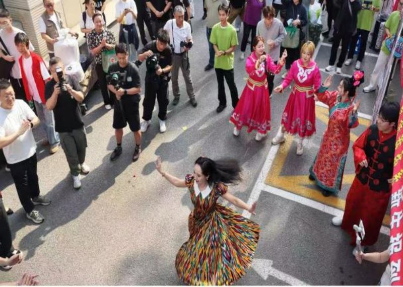 迎新当日,学院领导来到我系迎新点,看望2025级新生及亲友,并慰问参与迎新工作的师生。党委书记赵恒心为我系当天过生日的新生范羽萱佩戴校徽并赠送书籍,院长田彦为新生送上生日蛋糕与祝福,暖心的叮嘱和殷切的期盼为同学们的大学征程树立清晰的目标,注入满满的信心和能量。迎新现场,来自新疆维吾尔自治区的新生阿依迪娜·亚森艾跳起了欢快的《青春舞曲》,灵动的舞步如行云流水,将维吾尔族舞蹈的热情与活力展现得淋漓尽致,她为自己成为新时代的沈音学子感到骄傲和自豪,她立志深耕热爱,砥砺奋斗,成为民族团结进步的践行者;其他民族的同学们跟着节奏挥舞手臂,沉浸在舞蹈的旋律和美妙的歌声里,大家的心都随着韵律紧密相连。