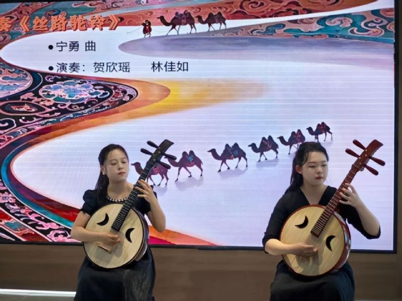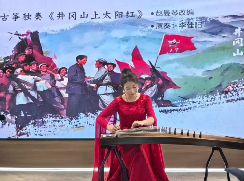2024级硕士研究生贺欣瑶和2025级硕士研究生林佳如的中阮齐奏《丝路驼铃》以其独特的音色和悠扬的旋律,仿佛将观众带入了千年丝绸之路的壮阔画卷,展现了中华文化的包容与博大。2025级硕士研究生李佳阳同学的古筝独奏《井冈山上太阳红》更以激昂的旋律和磅礴的气势,再现了革命岁月的烽火历程,奏响了红色经典的时代强音。