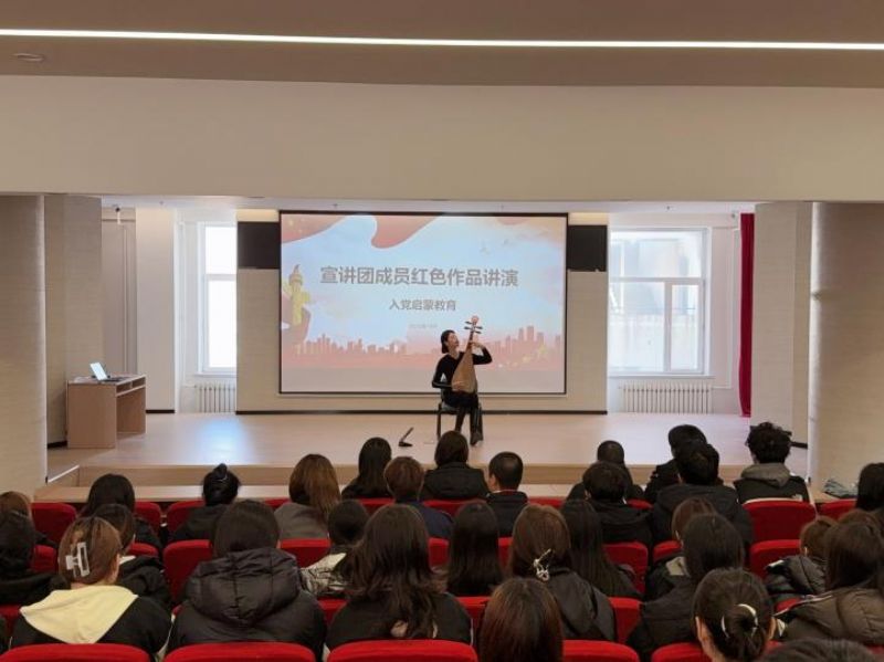 为进一步加强学生入党积极分子队伍建设,做好对新生的理想信念教育,深化对党的认识、厚植爱党爱国爱校情怀,扣好大学的“第一粒扣子”,激发政治热情,民族器乐系党总支于10月22日在综合楼四楼学术报告厅开展入党启蒙教育。党总支专职组织员袁宗苗、学生党支部书记毕欣、辅导员王晓飞、王艺霏、宣讲团成员及2025级全体新生参加了本次入党启蒙教育,毕欣主持入党启蒙教育。