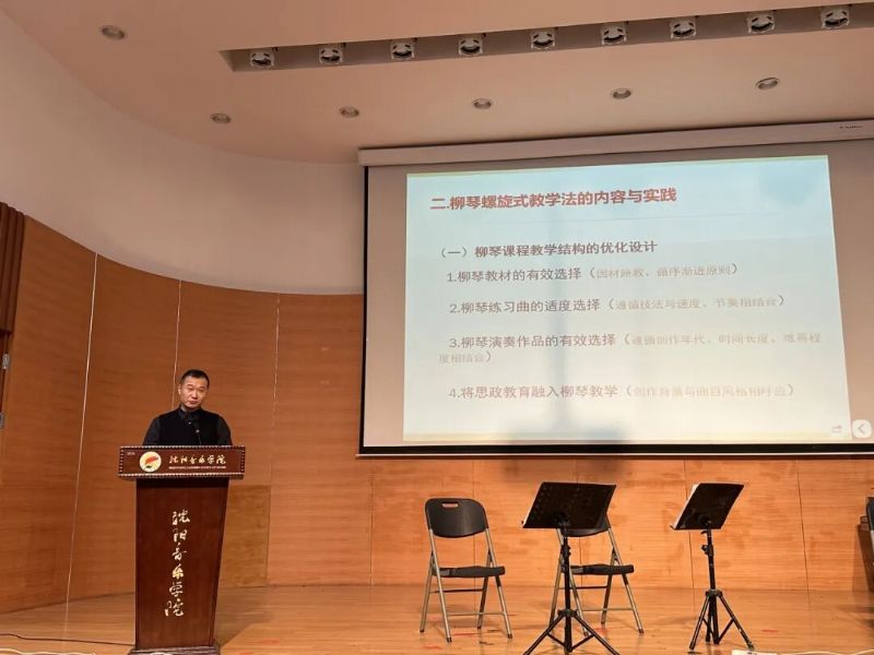 11月6日下午,中国当代杰出柳琴演奏家、教育家、一级演奏员王红艺教授应邀做客沈阳音乐学院民族器乐系,以“柳琴螺旋式教学法探索与实践”为主题,带来一场理论与实践深度融合的沉浸式学术讲座。本次活动是系部“本科教学质量提升月”系列活动之一,由民族器乐系主任张科威主持,相关专业师生及附中民乐学科学生共同参与。