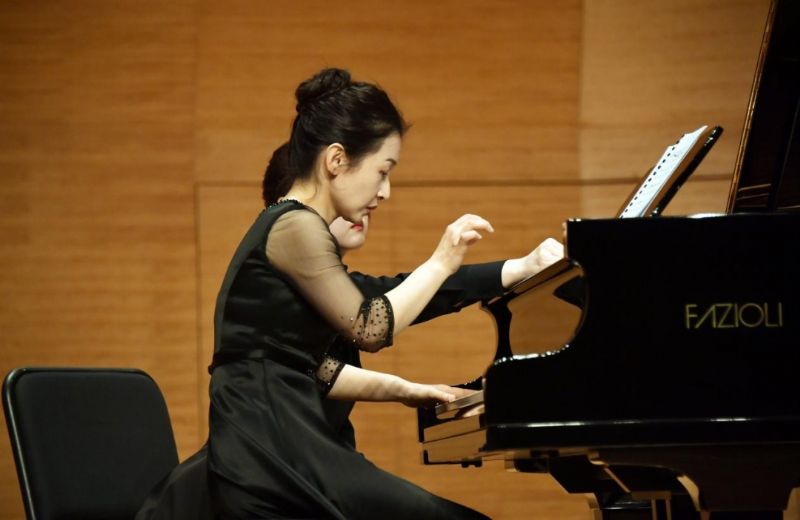 下半场王琦老师与张芳教授共同演奏的普朗克《假面舞会随想曲》和圣桑《引子与回旋随想曲》,她们配合默契,把两首作品风格表现的淋漓尽致,不是单纯的用钢琴模仿乐队的改编曲,而是充分地发挥了钢琴特性的双钢琴作品。曲终,那荡漾着忧愁的音符,那强烈鲜明而奇特的主题旋律,那饱满明亮如葵的金黄音色,那千变万化而光彩无限的乐章,都在一片绚烂中久久绕梁,将整场音乐会推向了高潮,现场掌声雷鸣。