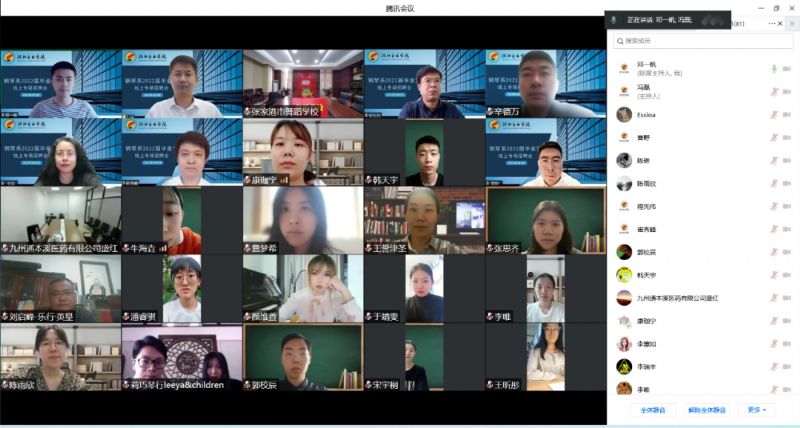 为提高我系毕业生就业质量,实现高校与企业的良性互动,形成实习、就业的紧密链接,6月6月,钢琴系组织开展2022届毕业生线上专场招聘会,邀请省内外5家优质用人单位,进行现场企业推介。钢琴系领导班子、辅导员、全体毕业生及低年级学生80余人参加会议。会议由辅导员冯磊主持。