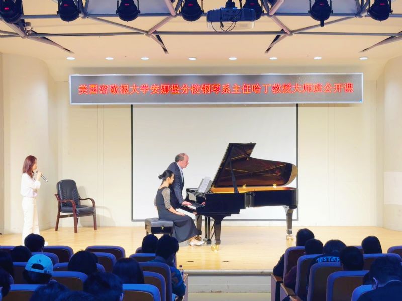 6月4日,美国密歇根大学安娜堡分校钢琴系主任克里斯托弗·哈丁教授大师课在我院举办。钢琴系领导班子成员、全体师生及其他院系师生参加活动。钢琴系主任李哲主持大师课,青年教师程妍担任翻译。