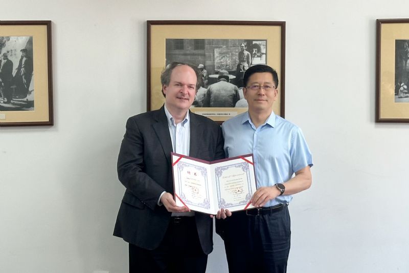 赵恒心与哈丁教授进行了亲切会谈,并为哈丁教授颁发了我院客座教授聘书。