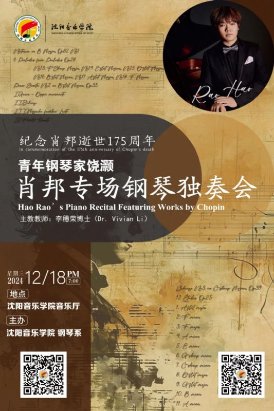 预告丨纪念肖邦逝世175周年 青年钢琴家饶灏 肖邦专场钢琴独奏会