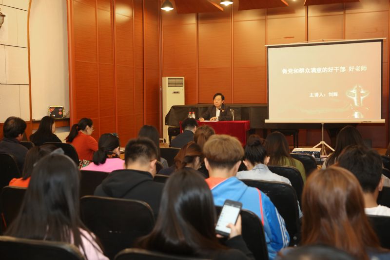 为进一步增强广大党员、教师立足岗位干事创业的自觉性、积极性、主动性和创造性,推动“两学一做”学习教育深入开展, 10月19日,院长刘辉为教学联系点民乐系、作曲系和其所在党支部民声系的师生党员及入党积极分子作了题为《做党和群众满意的好干部 好党员 好老师》专题党课。党课由作曲系党总支书记陆苗主持。