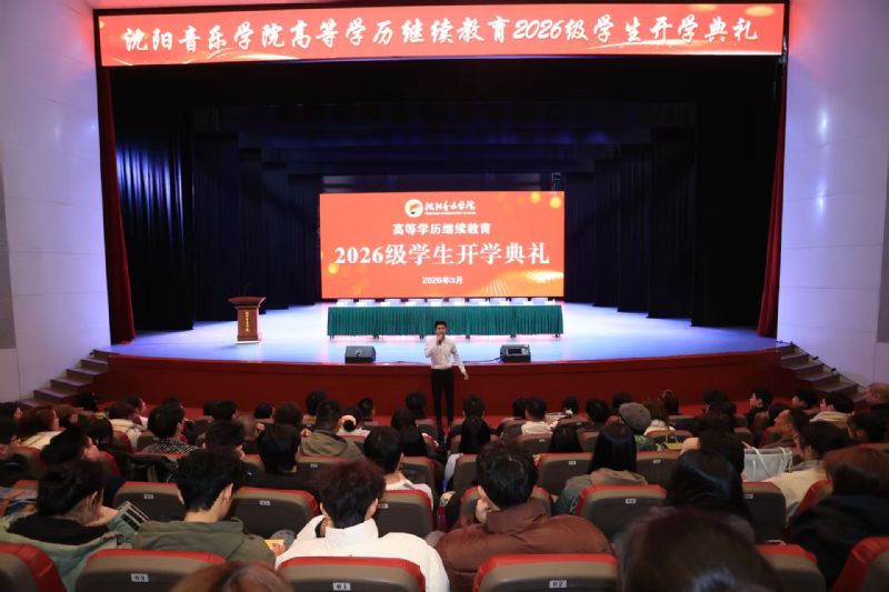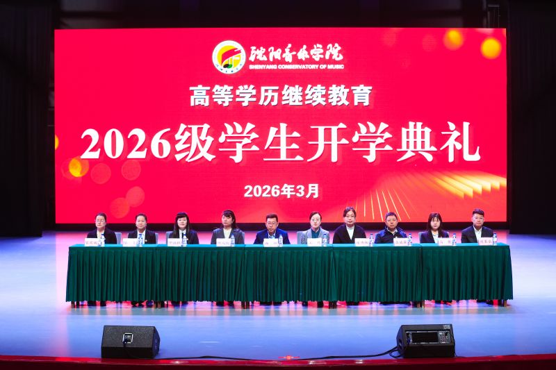 3月20日,沈阳音乐学院成人高等学历继续教育2026级学生开学典礼在长青校区隆重举行。沈阳音乐学院副院长庞渤,党委学生工作部(党委武装部、学生处)部长王爽,工会专职副主席兼机关党委书记邹天伦,招生就业处(创新创业中心)副处长褚祎楠,继续教育学院院长申淑征、党总支书记吕威霖、副书记张立、副院长高倩、成人教育办公室主任官圆媛、社会艺术水平考级办公室主任刘家辰,继续教育学院全体教师及2026级全体新生参加典礼。典礼由申淑征主持。