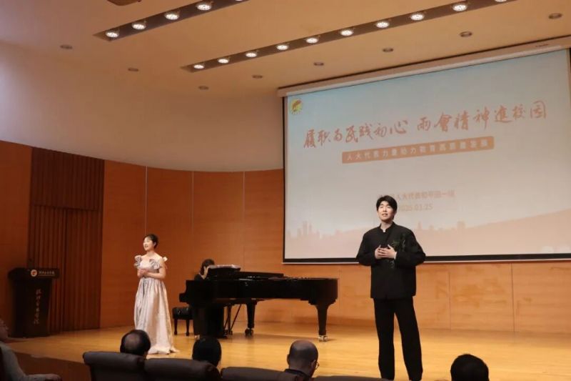 活动现场,声乐歌剧系学生代表以独唱、重唱、合唱等形式,精彩演绎了《故乡的云》《忆秦娥·娄山关》等艺术作品。精湛的艺术表现与真挚的情感,充分展现了学院艺术人才培养的丰硕成果。学生们以艺术实践生动回应两会精神,彰显了新时代学子将个人艺术追求融入国家发展的坚定信念与昂扬风貌。