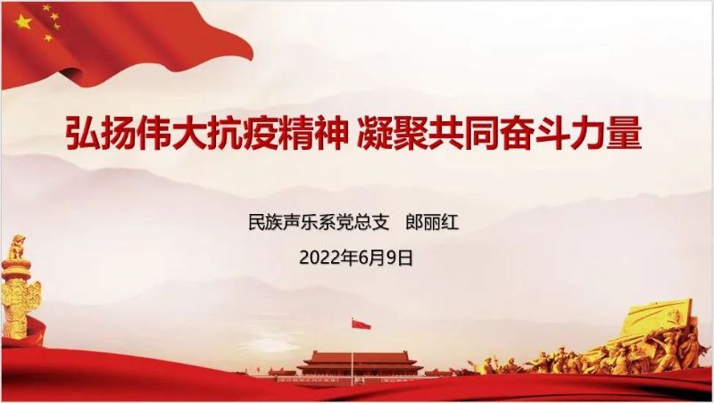 为深入学习贯彻习近平总书记关于疫情防控工作的重要讲话和指示精神,学习宣传中央、省委、省委教育工委和学院党委关于疫情防控工作的部署要求,切实增强青年学生抗疫必胜的坚定信念,使青年学生深刻领悟“两个确立”的决定性意义,进一步增强“四个意识”、坚定“四个自信”、做到“两个维护”,用实际行动践行伟大抗疫精神。6月9日,民族声乐系党总支书记郎丽红以“弘扬伟大抗疫精神凝聚共同奋斗力量”为题讲授抗疫思政课。学院纪委书记、监察专员闫玉娇,纪委副书记、纪委(监察专员办公室)综合监察室主任、审查调查室主任赵美出席思政课。民族声乐系全体学生参加思政课。